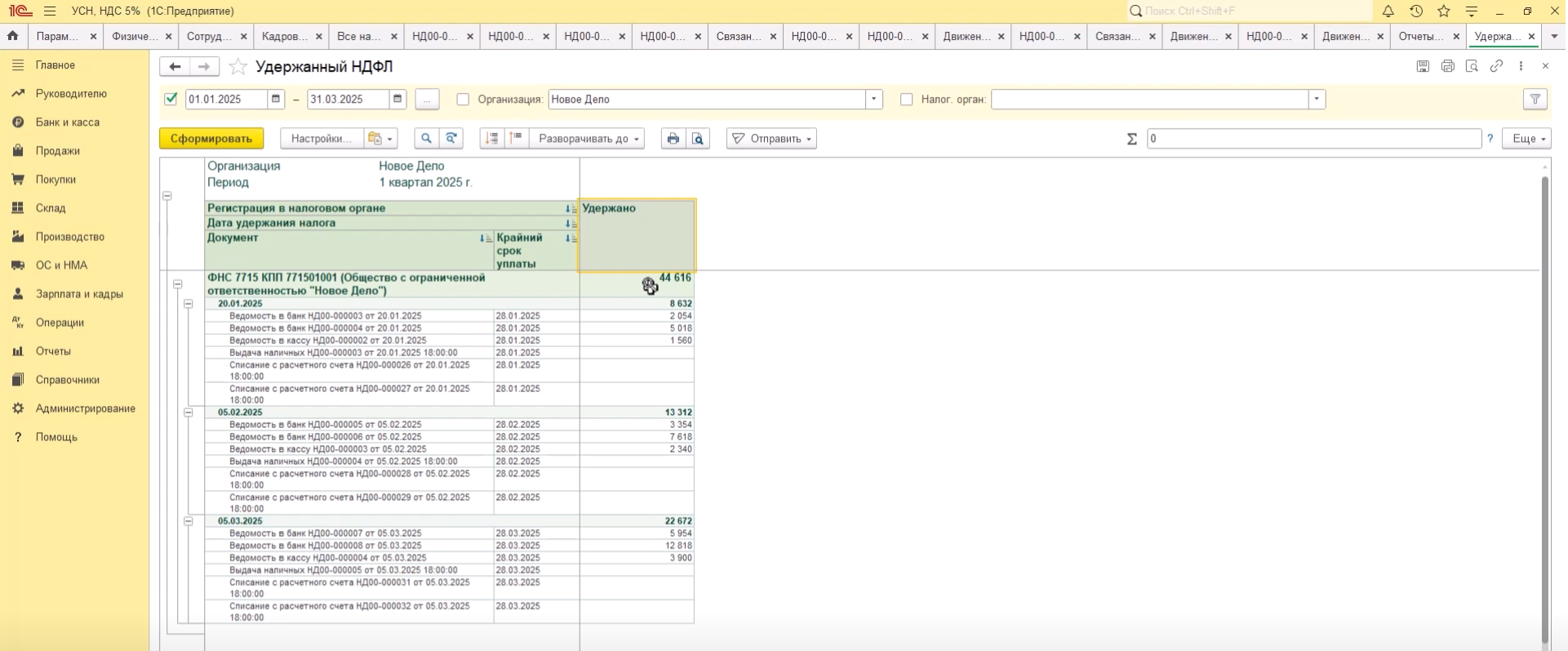 Вы не просто смотрите лекции — вы выполняете все действия в базе: настраиваете учётную политику, вводите документы, формируете КУДиР, рассчитываете налоги и закрываете месяц.